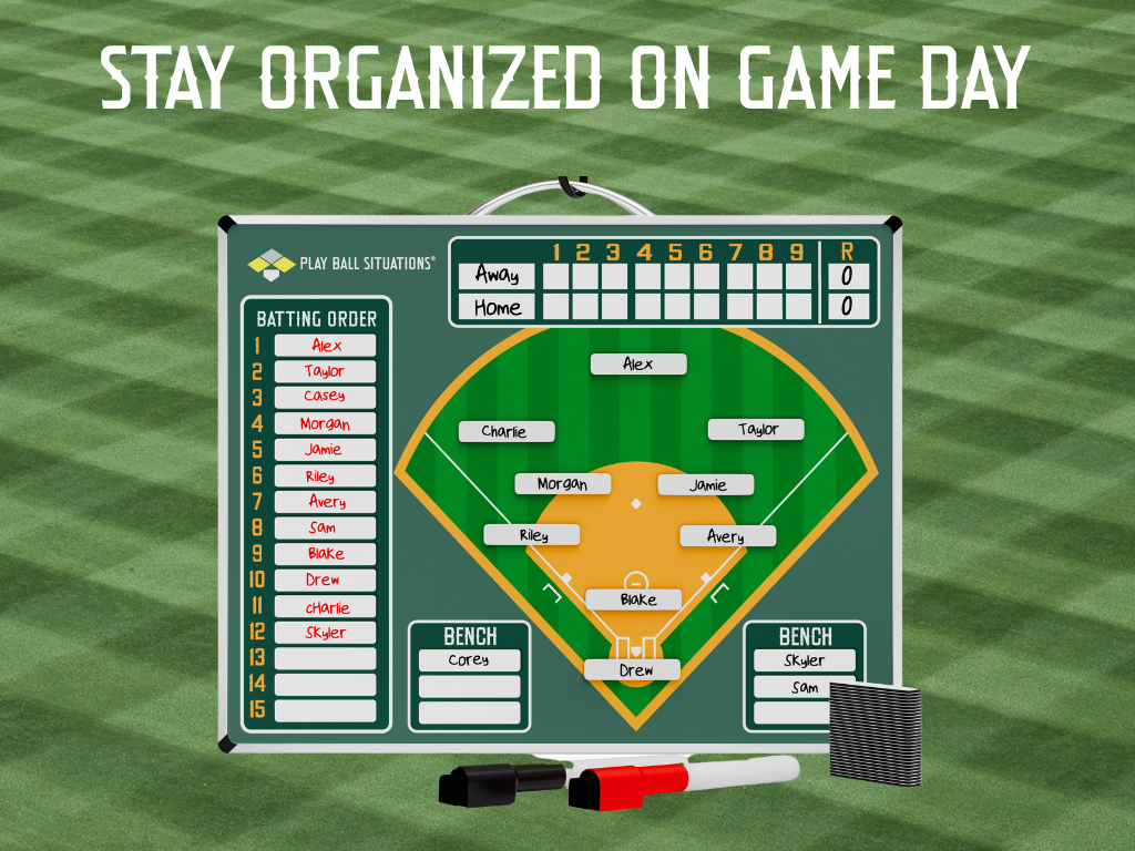 Keep game days stress-free and fun with this baseball dry erase coaching board.